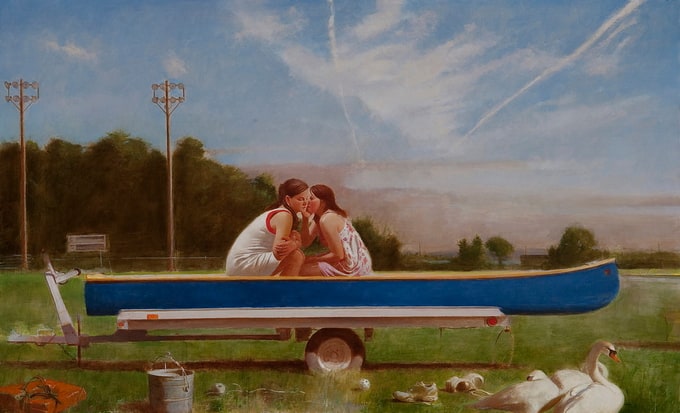 David Graeme Baker was born in 1968 in South Africa. Graduated Pennsylvania Academy of Fine Arts. Lives in Hancock with his wife and children. Illustrates melancholic pictures, with his family members.